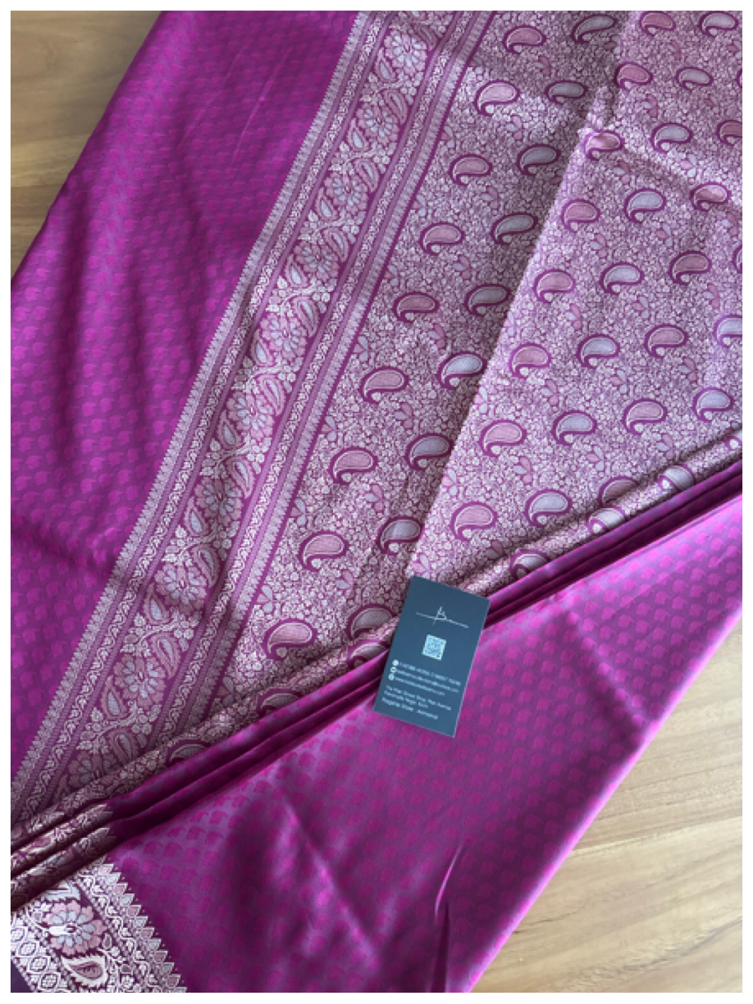 Banarasi Handloom pashmina silk saree with same shade blouse with border