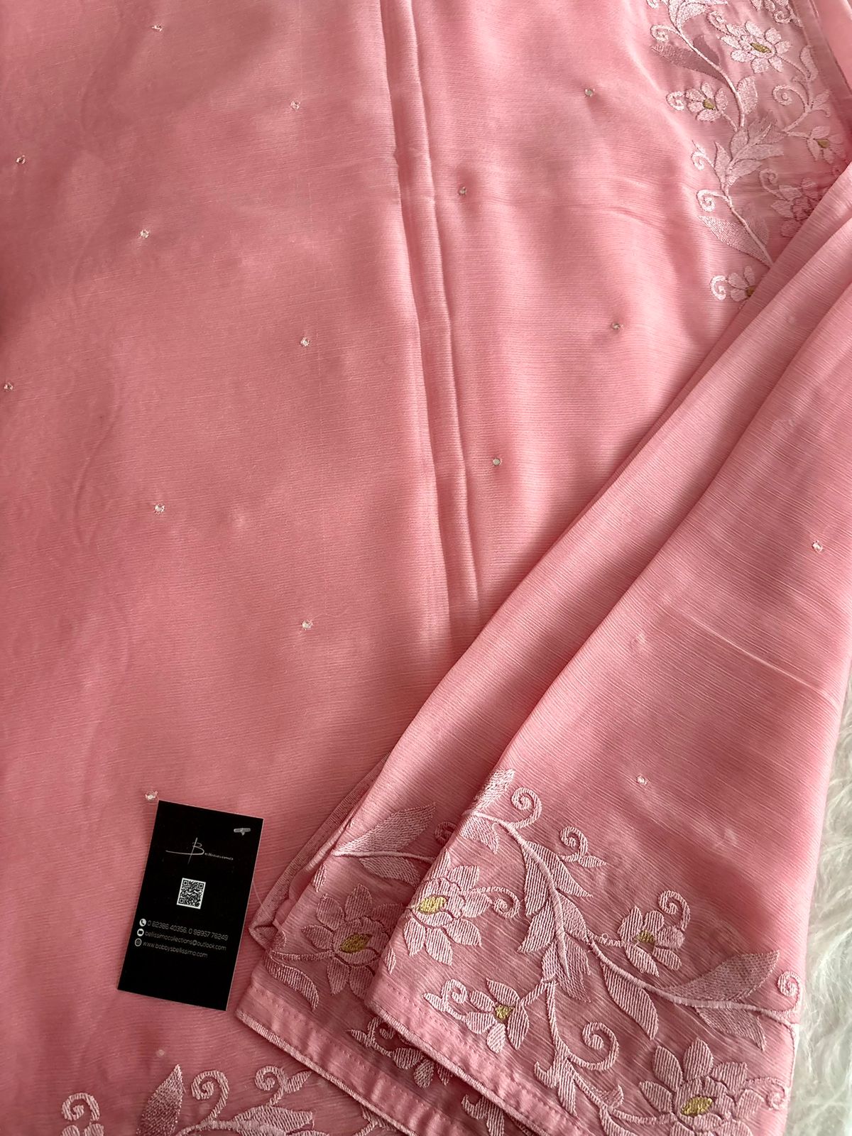 Chiffon embroidered saree with mirror work, saree with blouse fabric