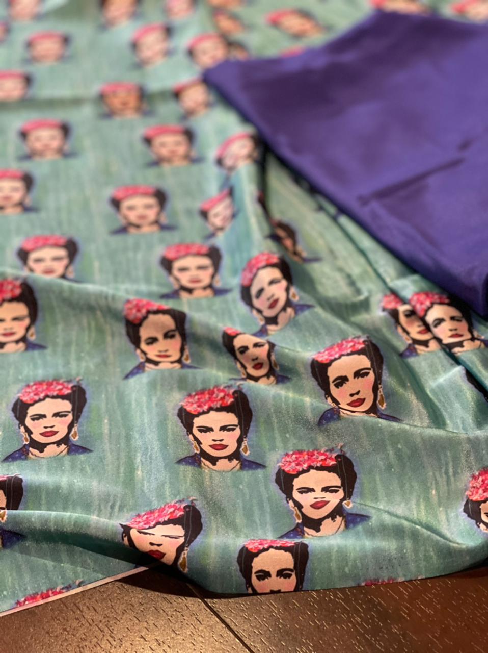 Crepe saree with crepe blouse.