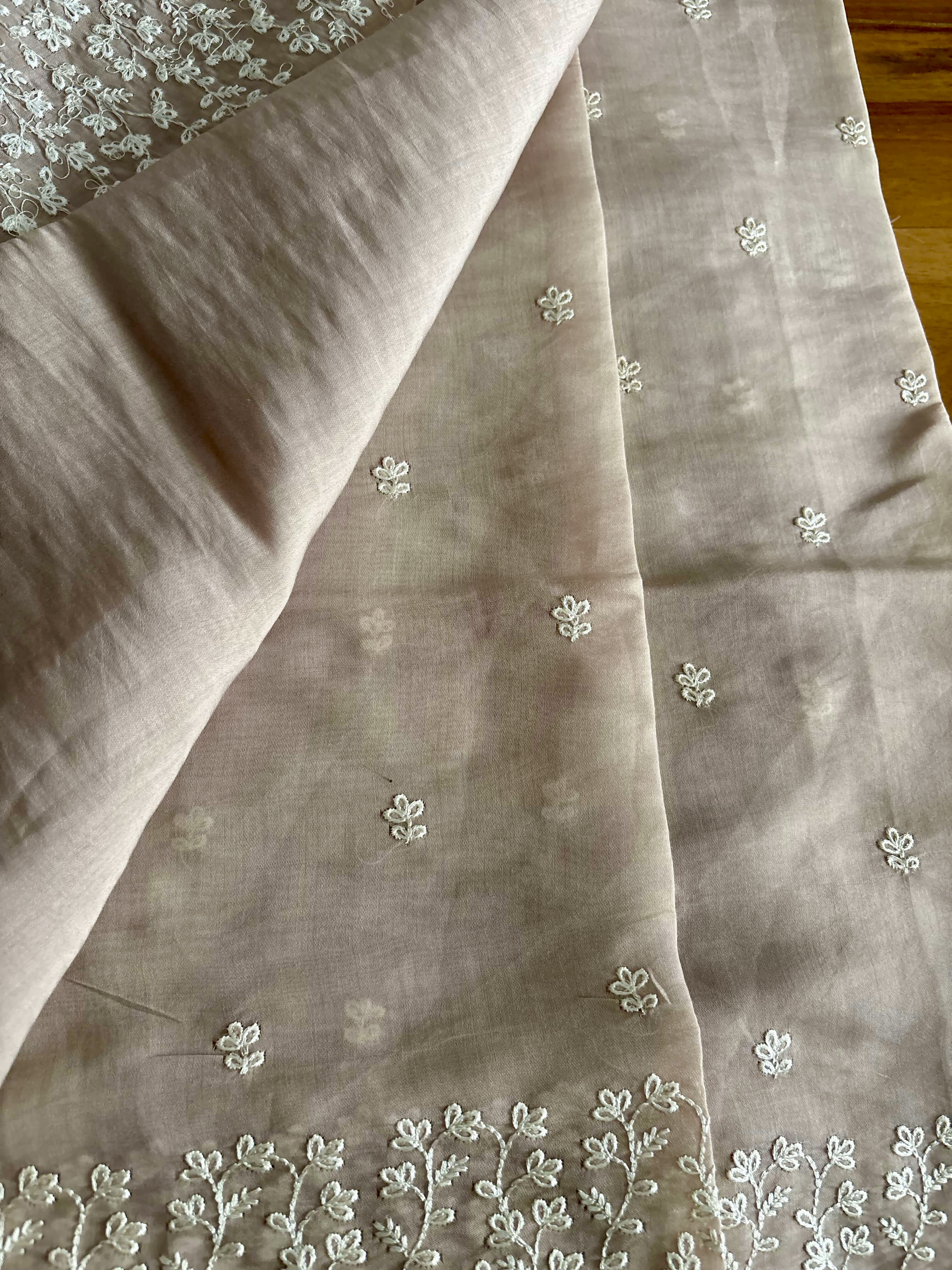 Mul Chanderi embroidered saree with same shade blouse
