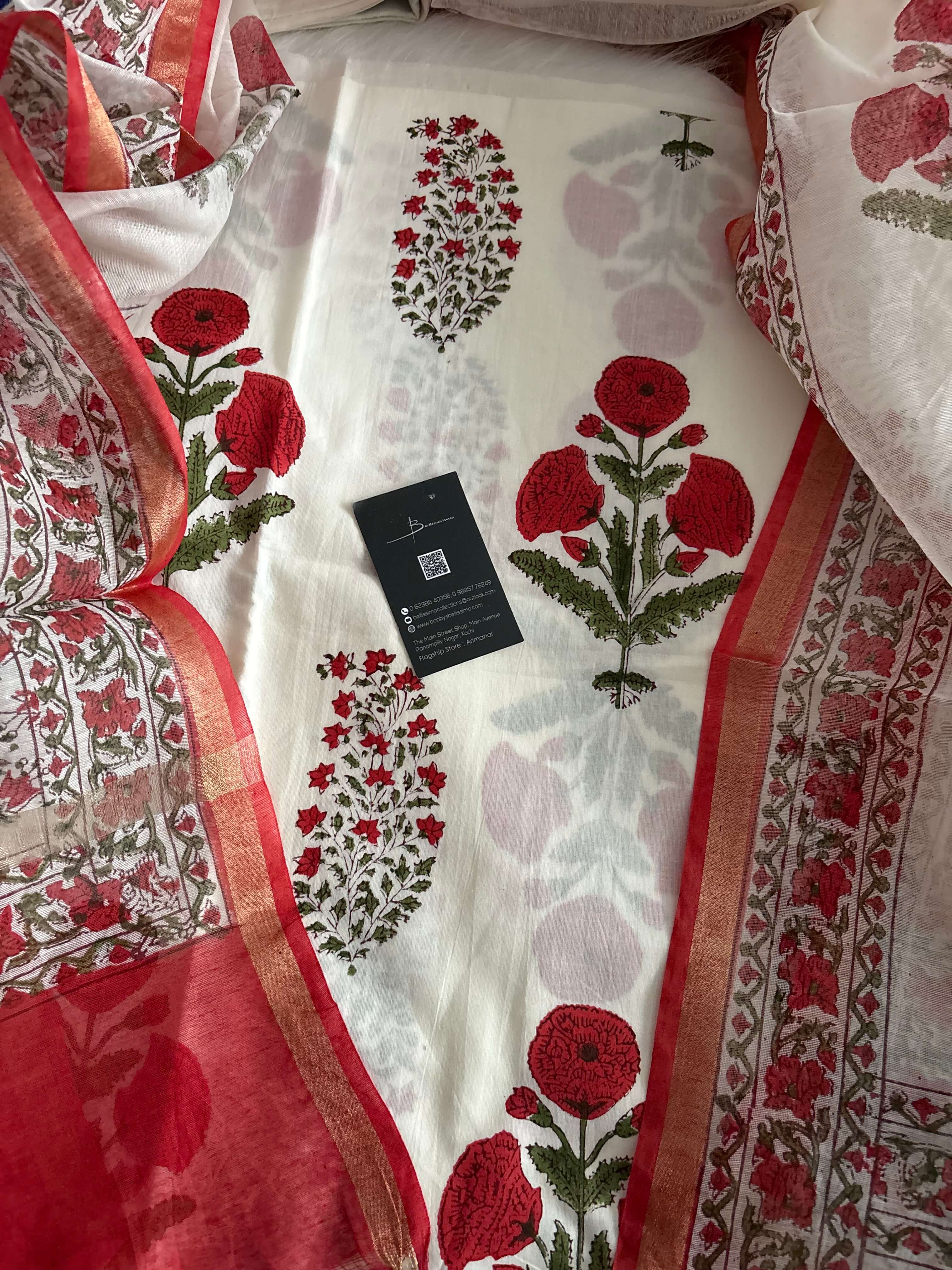 Pure Cotton Kurti with Chanderi Duppatta, set without bottom