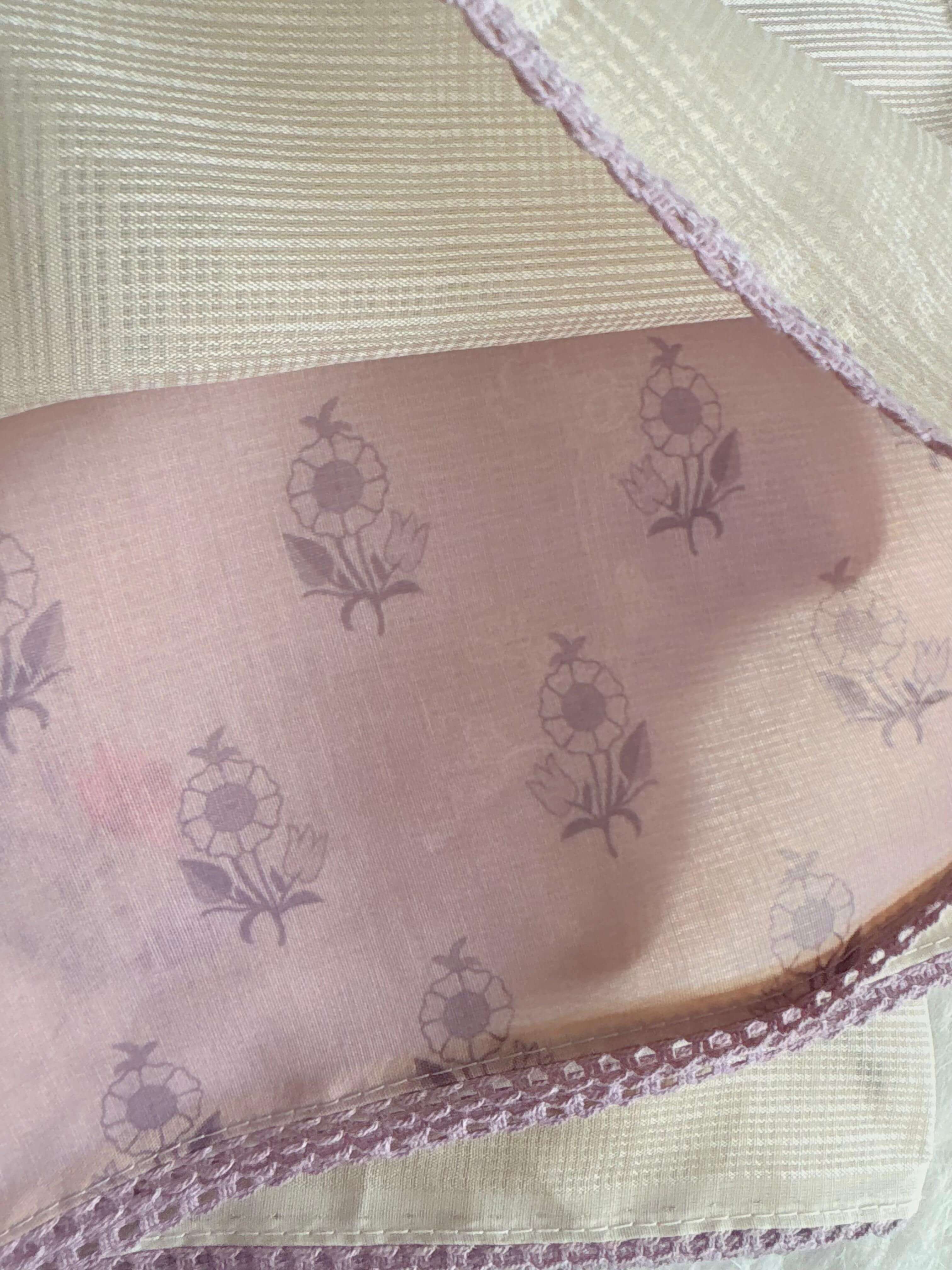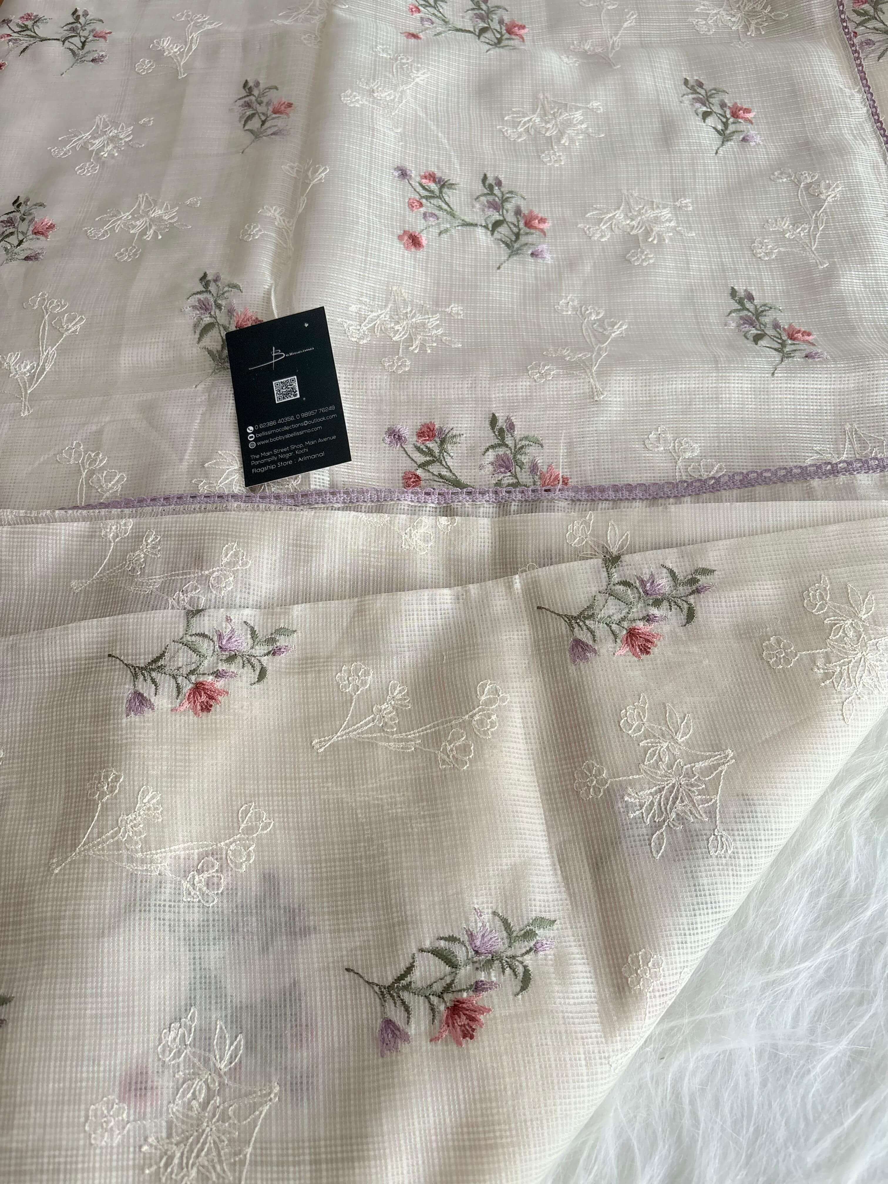 Soft Kota embroidered saree with contrast floral printed blouse