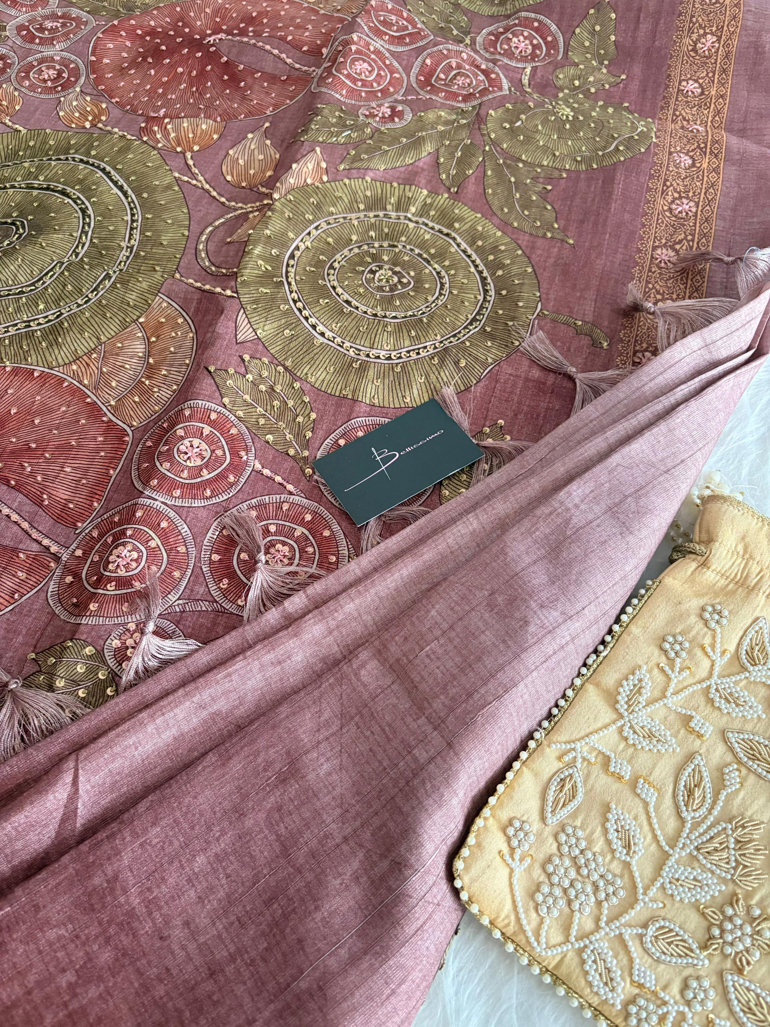 Tussar sequin embroidered saree with same shade blouse