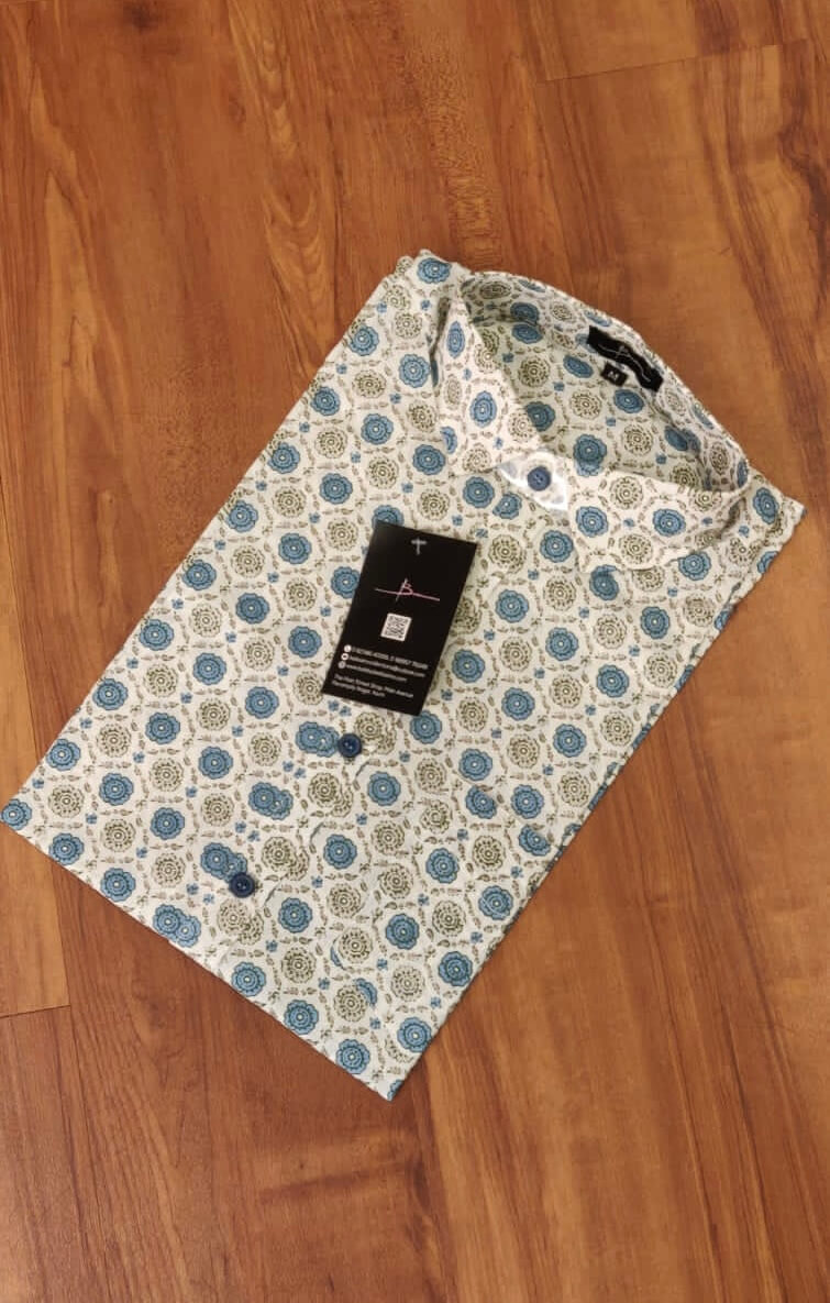 Hand Block Printed Cotton Shirt . Half Sleeves