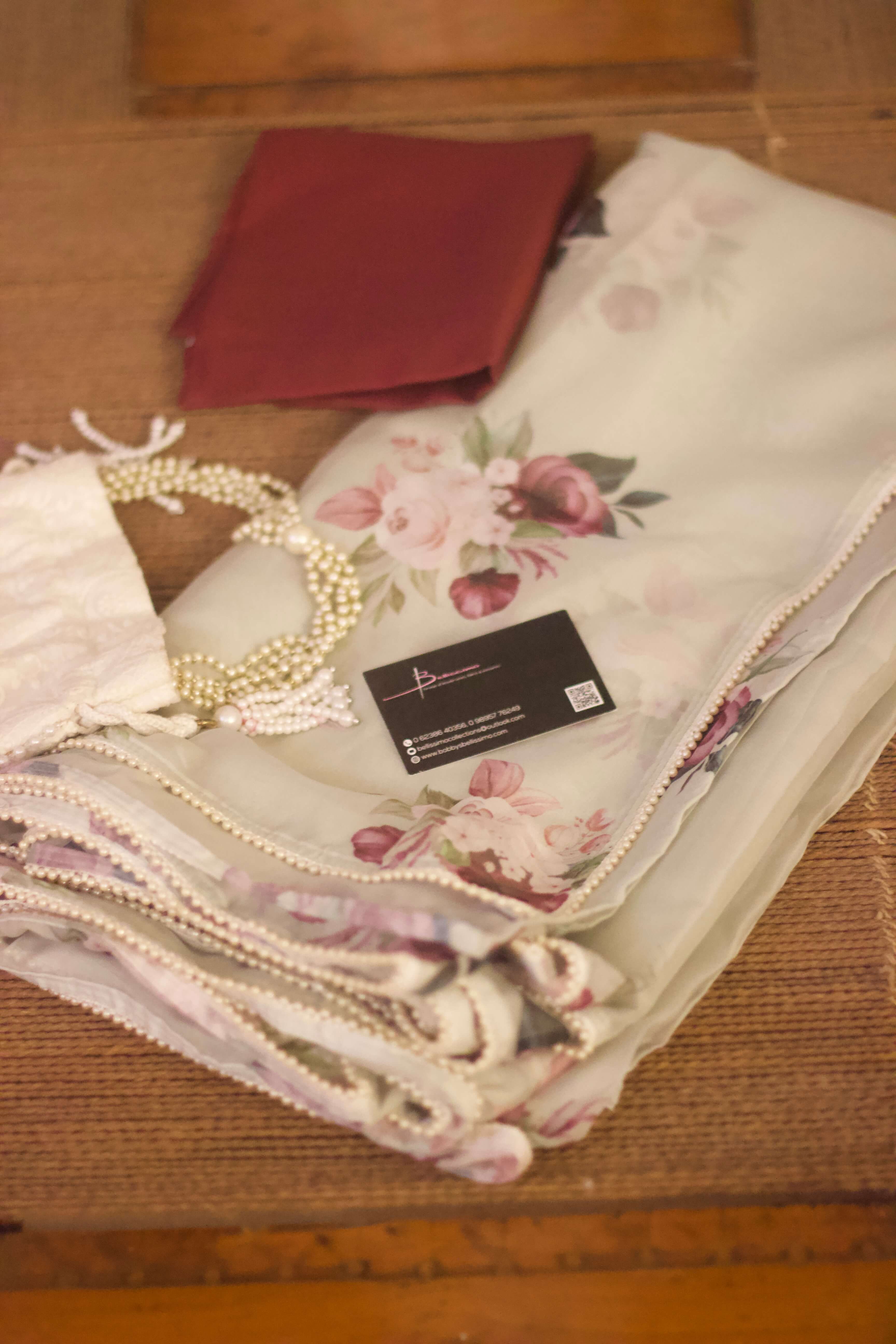 Floral Organza Silk Saree With pearl border, saree with silk base blouse