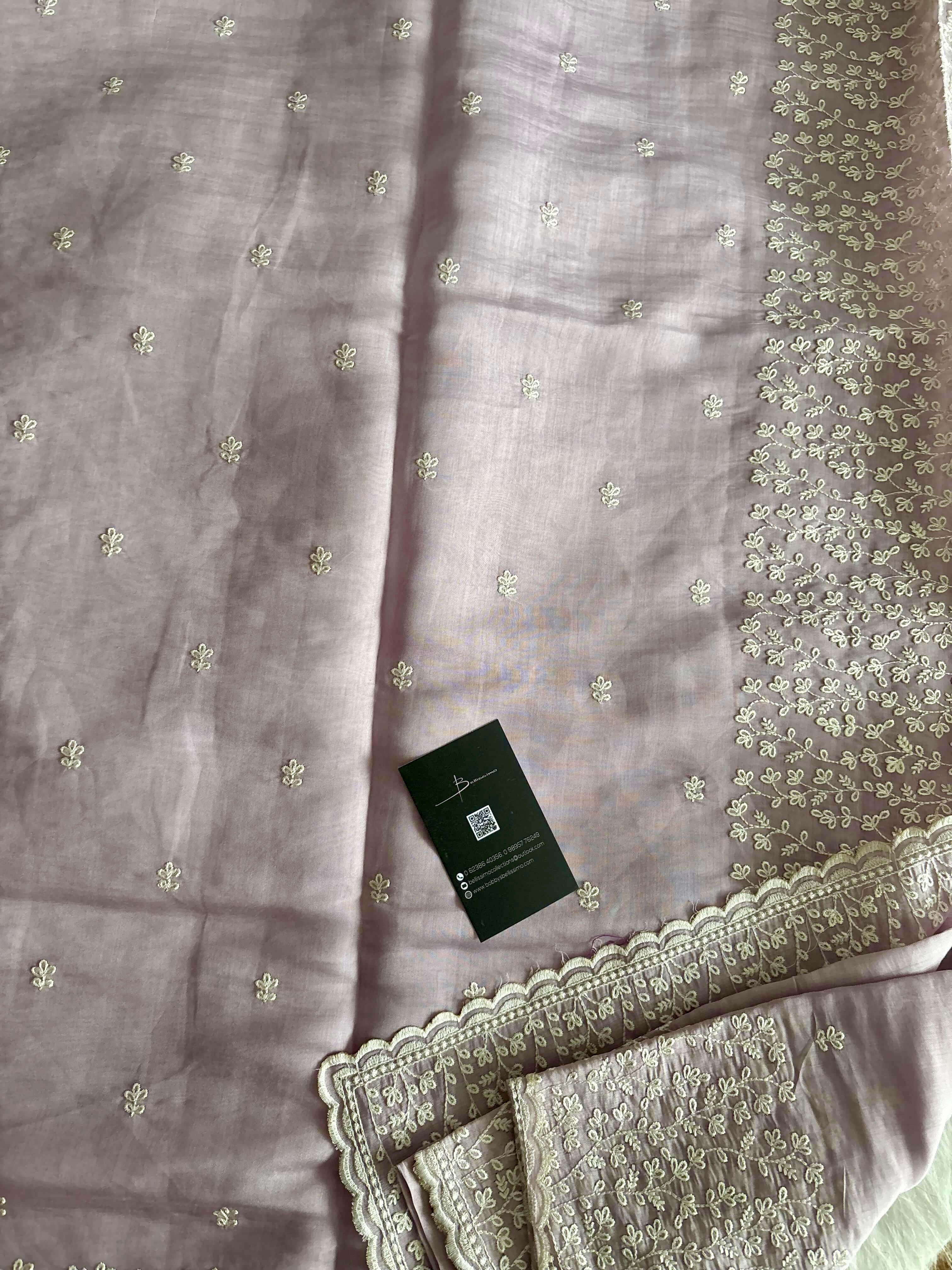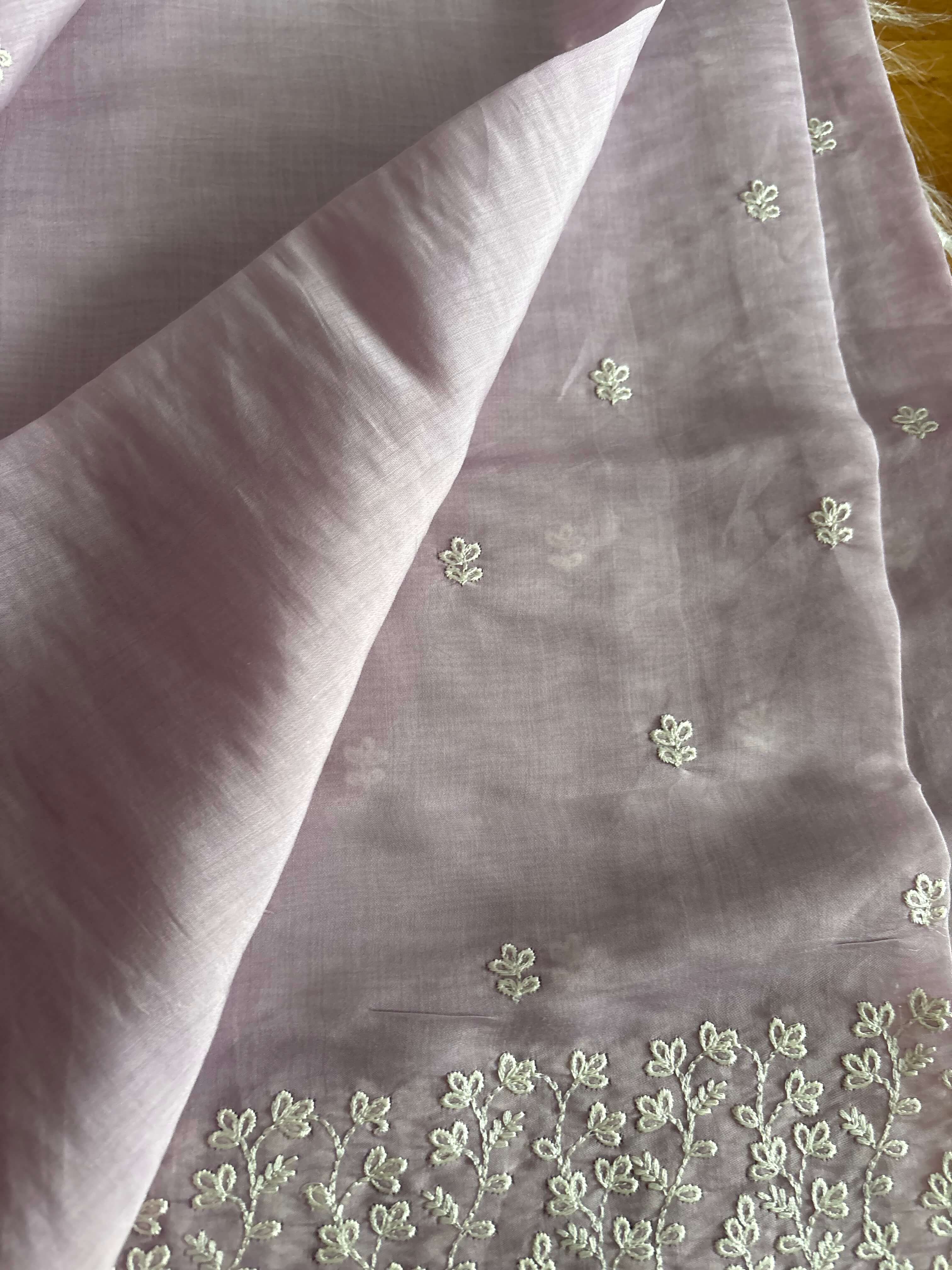 Mul Chanderi Embroidered Saree Soft fabric, intricate embroidery & elegant pastel shade.