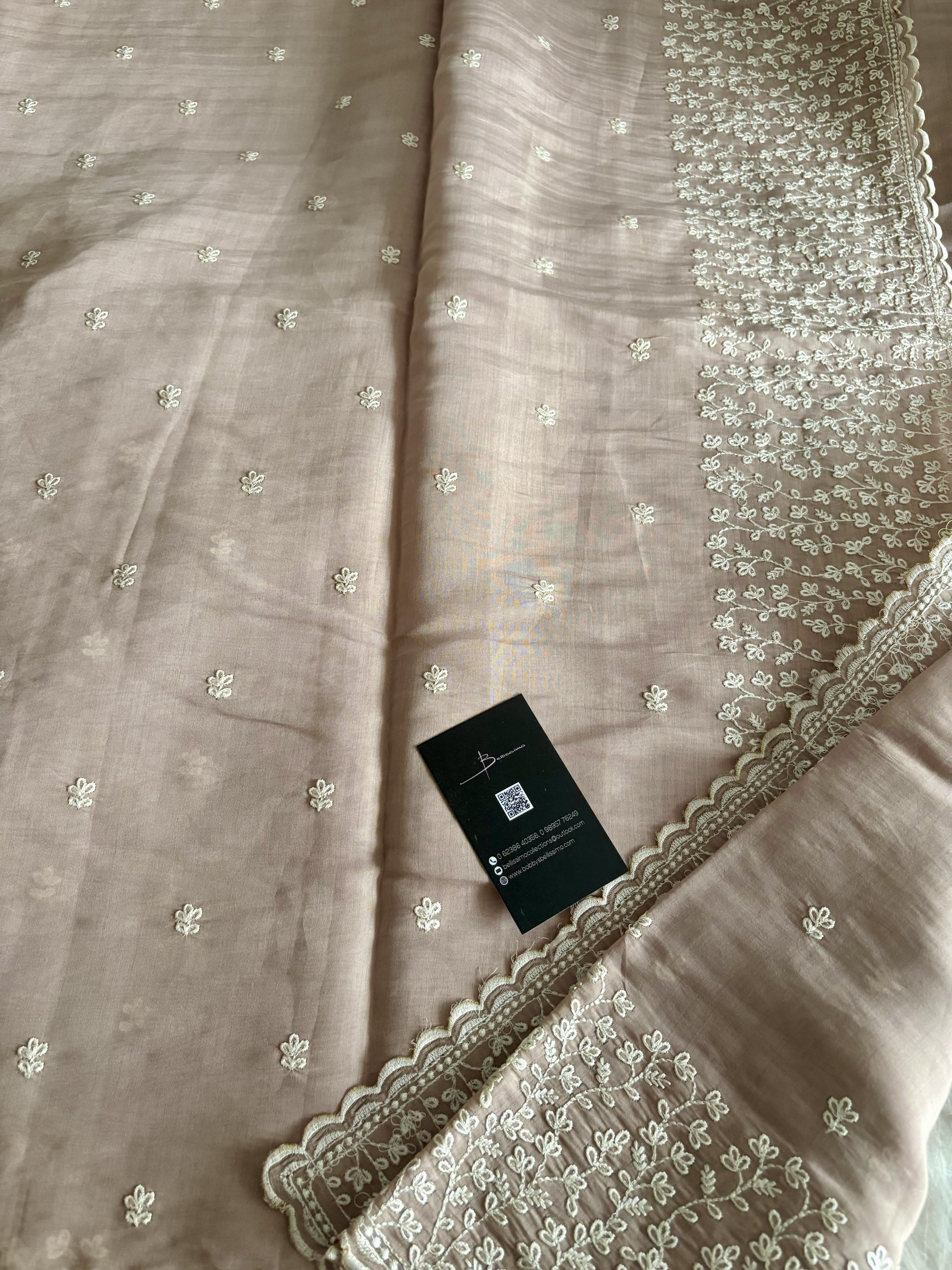 Mul Chanderi embroidered saree with same shade blouse