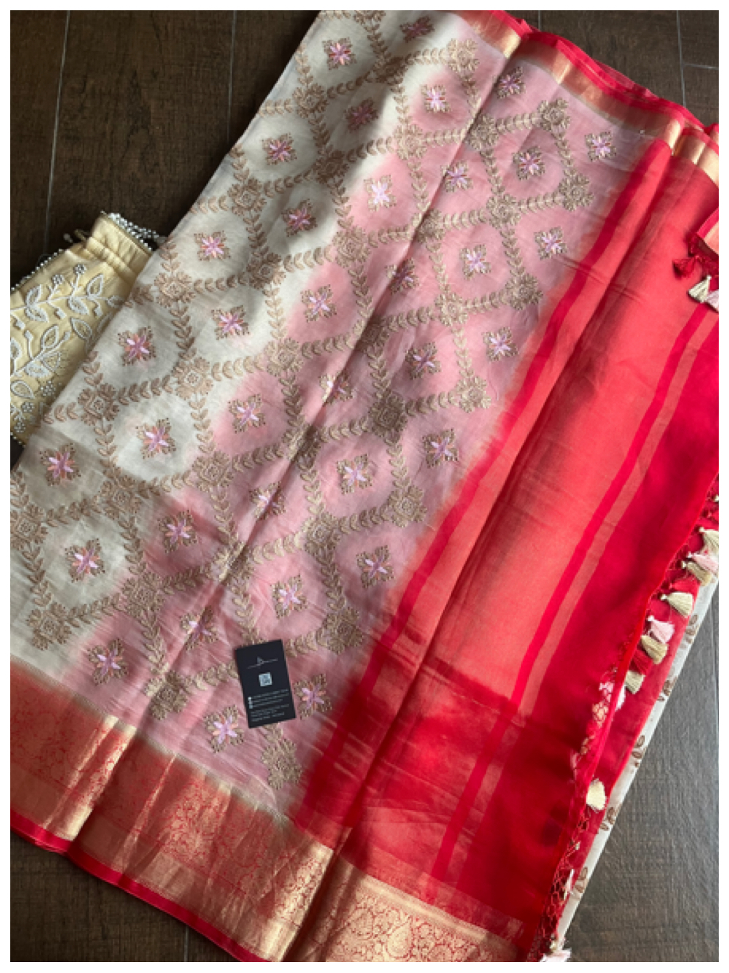 Organza silk embroidered saree with blouse