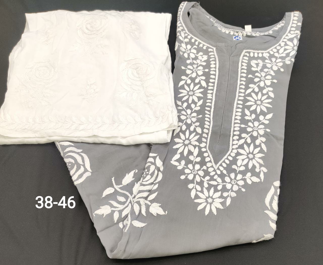Pure Modal Long kurta Rose block with Rose block palazzo set with chikankari hand embroidery Size mentioned Length 46" plus Size 36-44